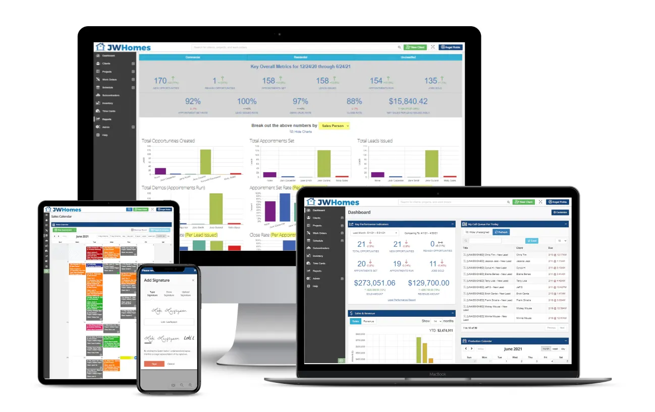 Schedule production teams with ease. Take control of subcontractor management. Use the GPS time clock to track installer productivity. Regulate work orders. Compare estimates to actuals. And much, much more.