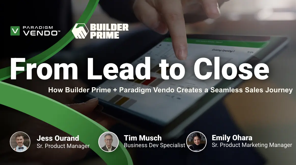 Disconnected systems cost you time, money, and deals. In today’s fast-moving home improvement market, you can’t afford to lose momentum with “I’ll get back to you” moments or duplicate data entry. Watch this exclusive webinar to see how Builder Prime and Paradigm Vendo work together to eliminate friction, accelerate sales, and deliver the modern experience homeowners expect.